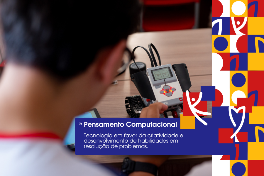 Além disso, o colégio investe em aulas de pensamento computacional e robótica educacional, desenvolvendo o raciocínio lógico, a criatividade e a capacidade de resolução de problemas desde cedo.