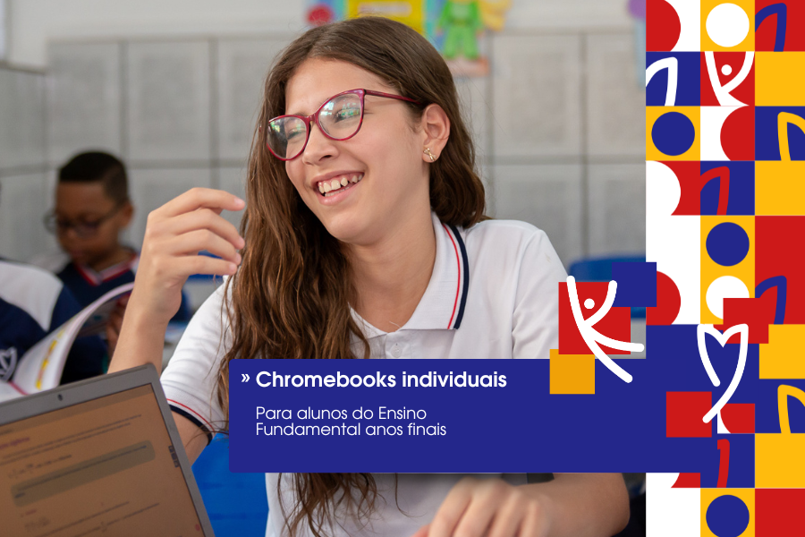 Para os estudantes do Ensino Fundamental Anos Finais, disponibilizamos Chromebooks individuais, garantindo acesso contínuo às ferramentas digitais, plataformas educacionais e atividades interativas. Isso promove autonomia, organização e protagonismo no processo de aprendizagem.